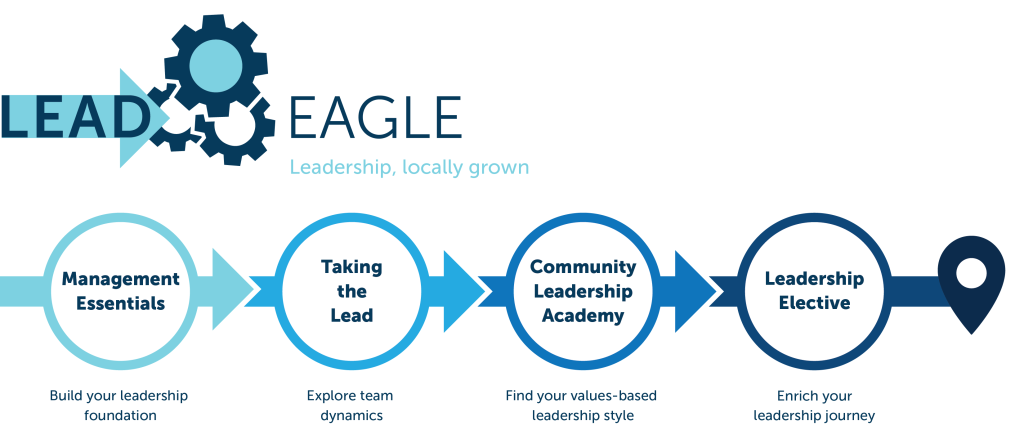 For local employers, the LEAD Eagle Certification is a strong indicator that an employee or candidate has invested in themselves and put down roots in the local community. You can expect someone with emotional intelligence, self-awareness, and the tools to lead, who comes with a robust professional network. The LEAD Eagle certification is a tool to move current employees to the next level of leadership or integrate new employees into the community.