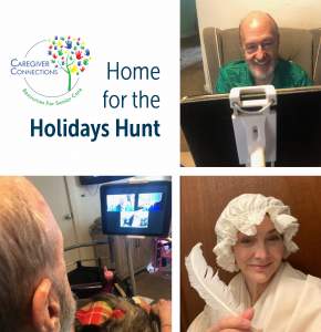 Starting on Thanksgiving and ending on New Year’s Day, Caregiver Connections is having a Home For The Holidays Hunt. This is a virtual scavenger hunt, with the goal of connecting families across the miles during these holidays. We know how difficult this holiday season will be. Isolation is huge in our senior population, as well as the caregivers, but we want to help families connect through this pandemic. Any family member may participate, regardless where they live in the world.